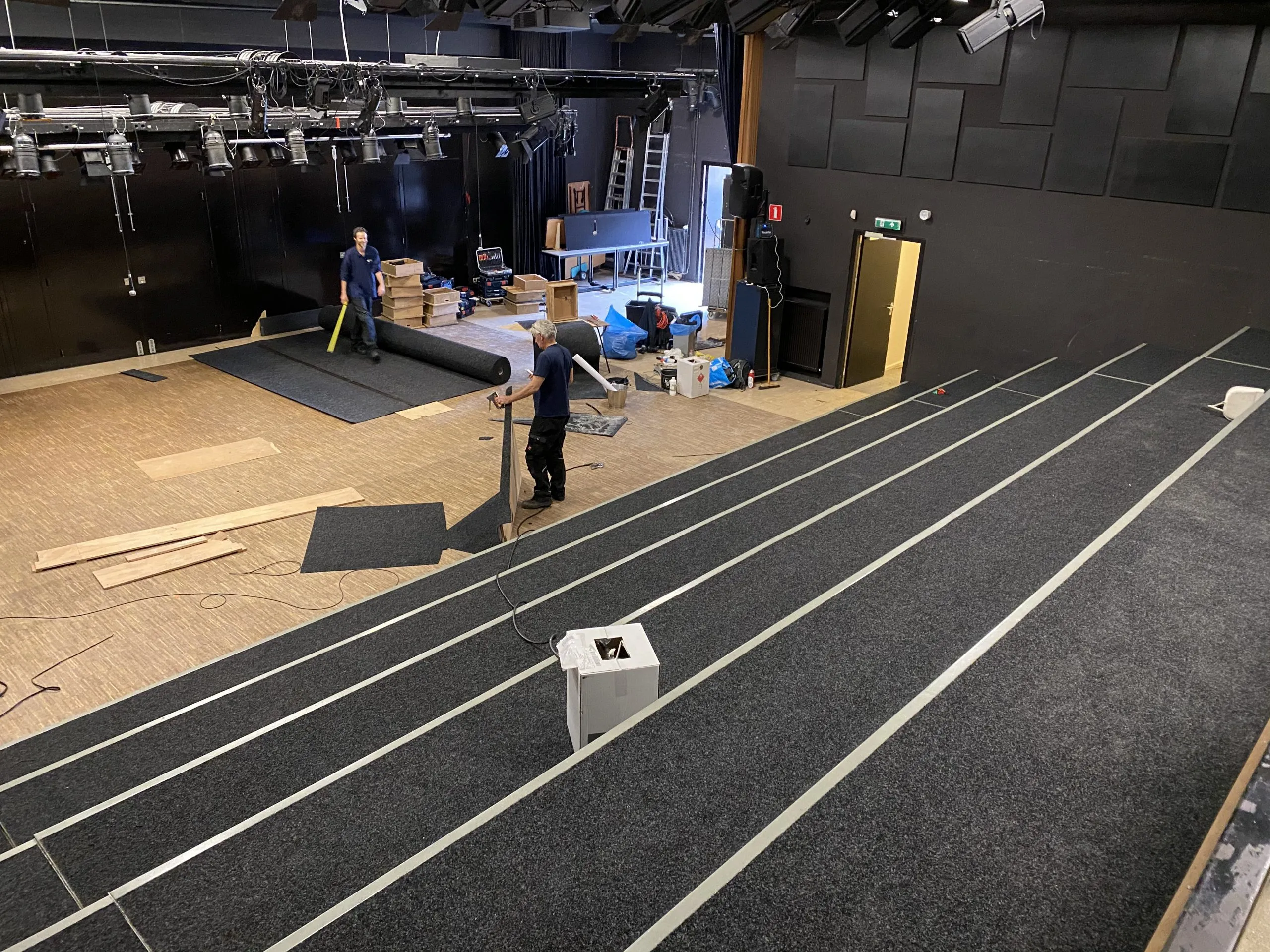 De vloerbedekking voor theaters komen van Rawson Eurocord. De kleur kan worden gekozen uit de standaardcollectie van 27 kleuren.