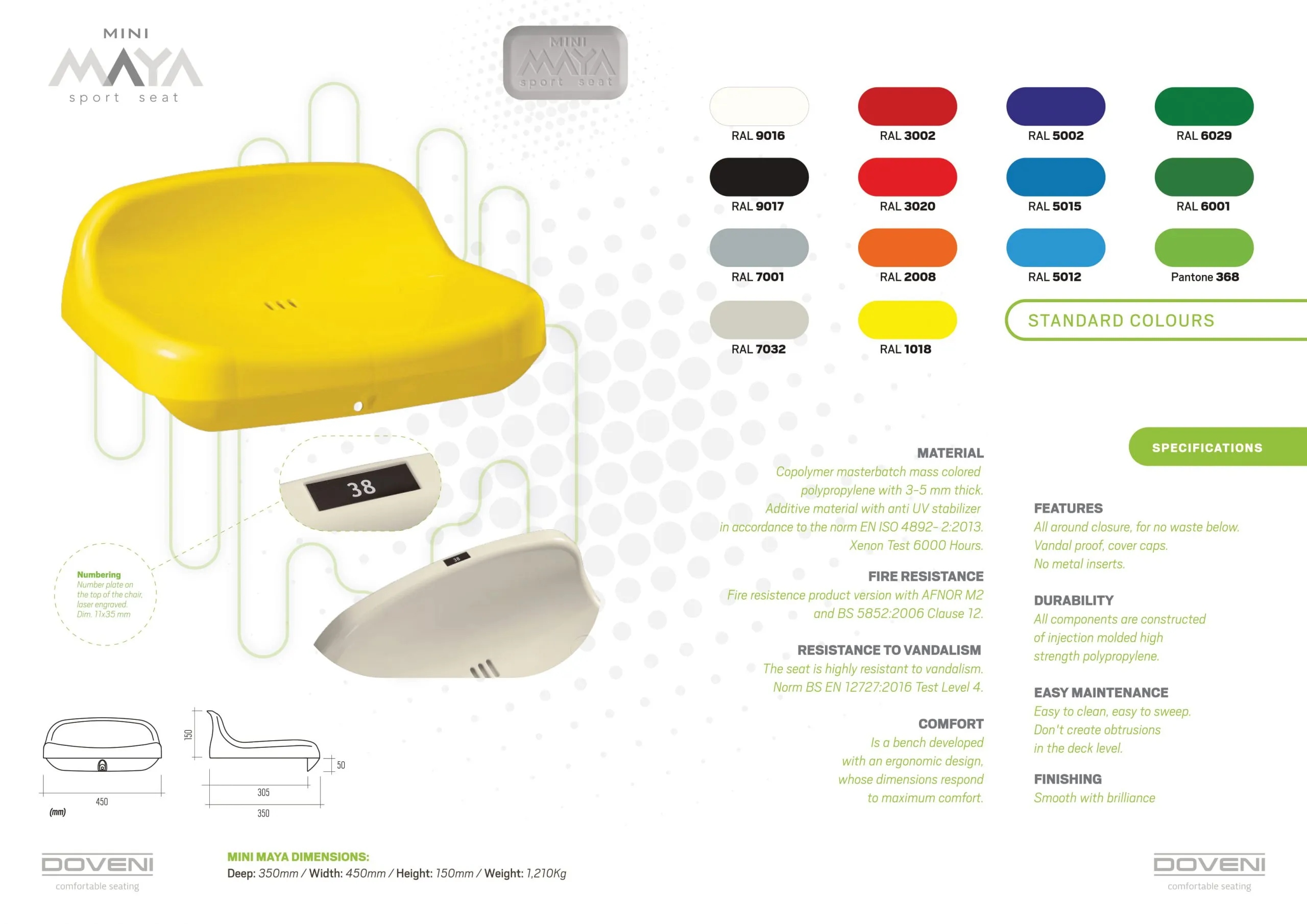 Meer gegevens over de stoelen en sportbanken, zoals tekeningen, zijn mogelijk op aanvraag.