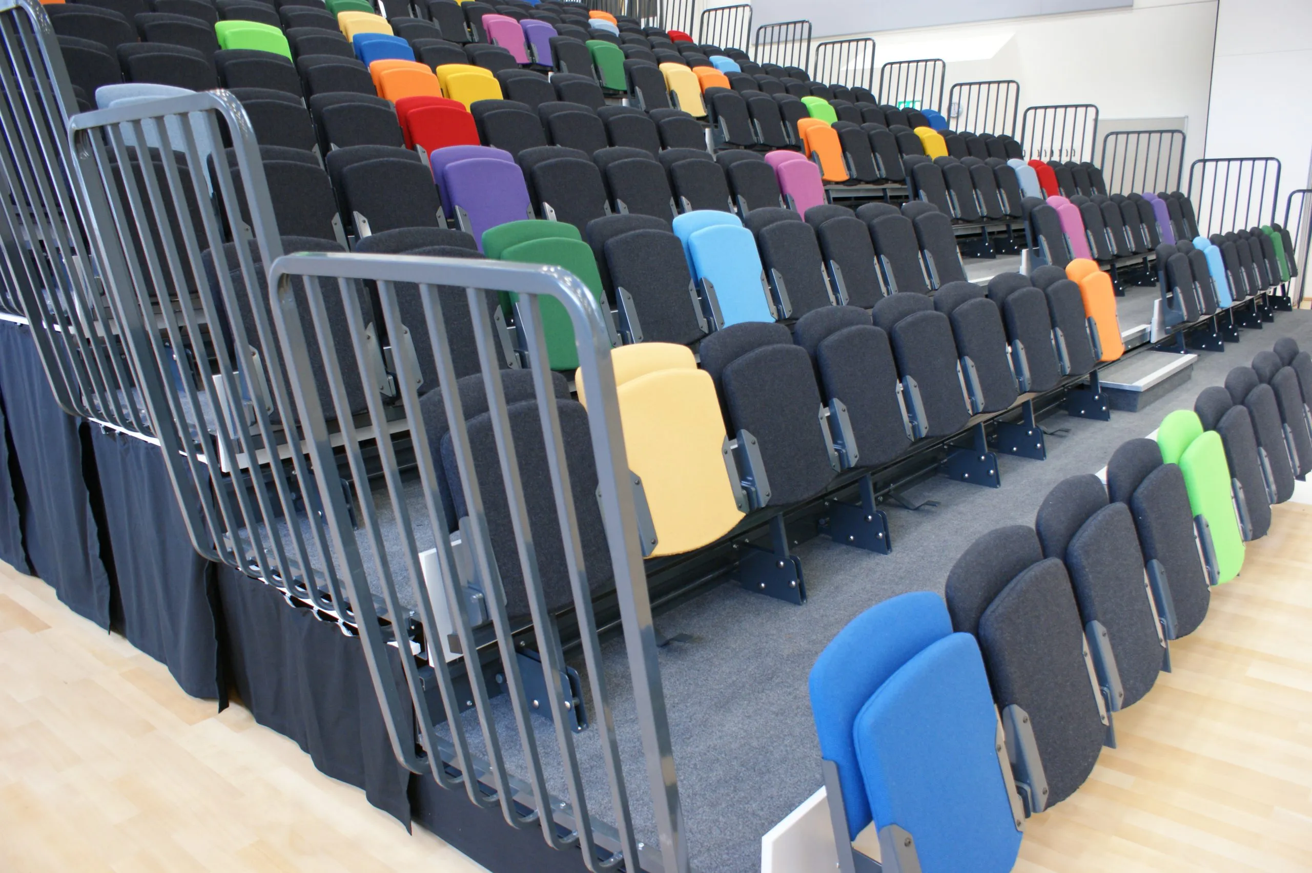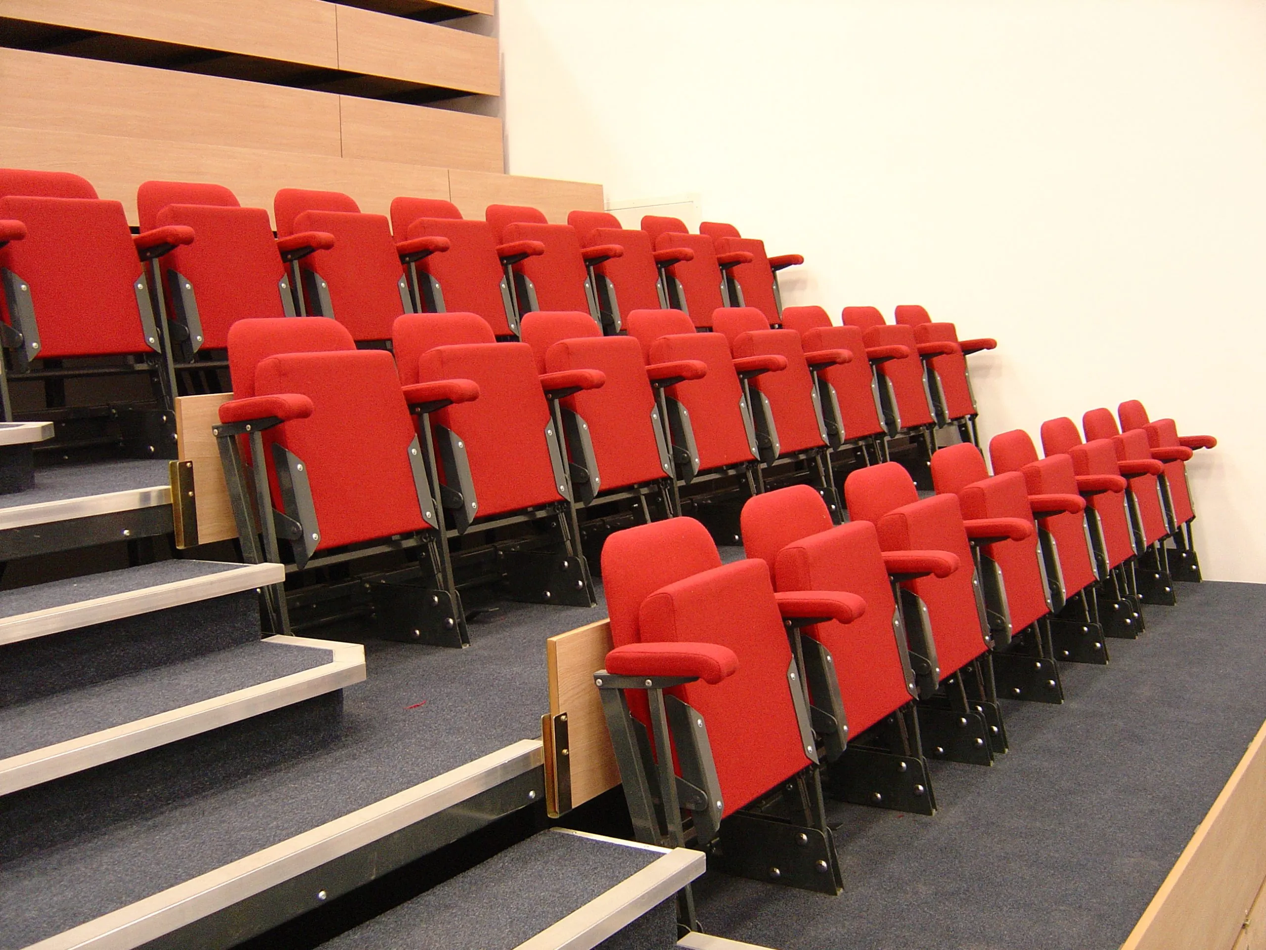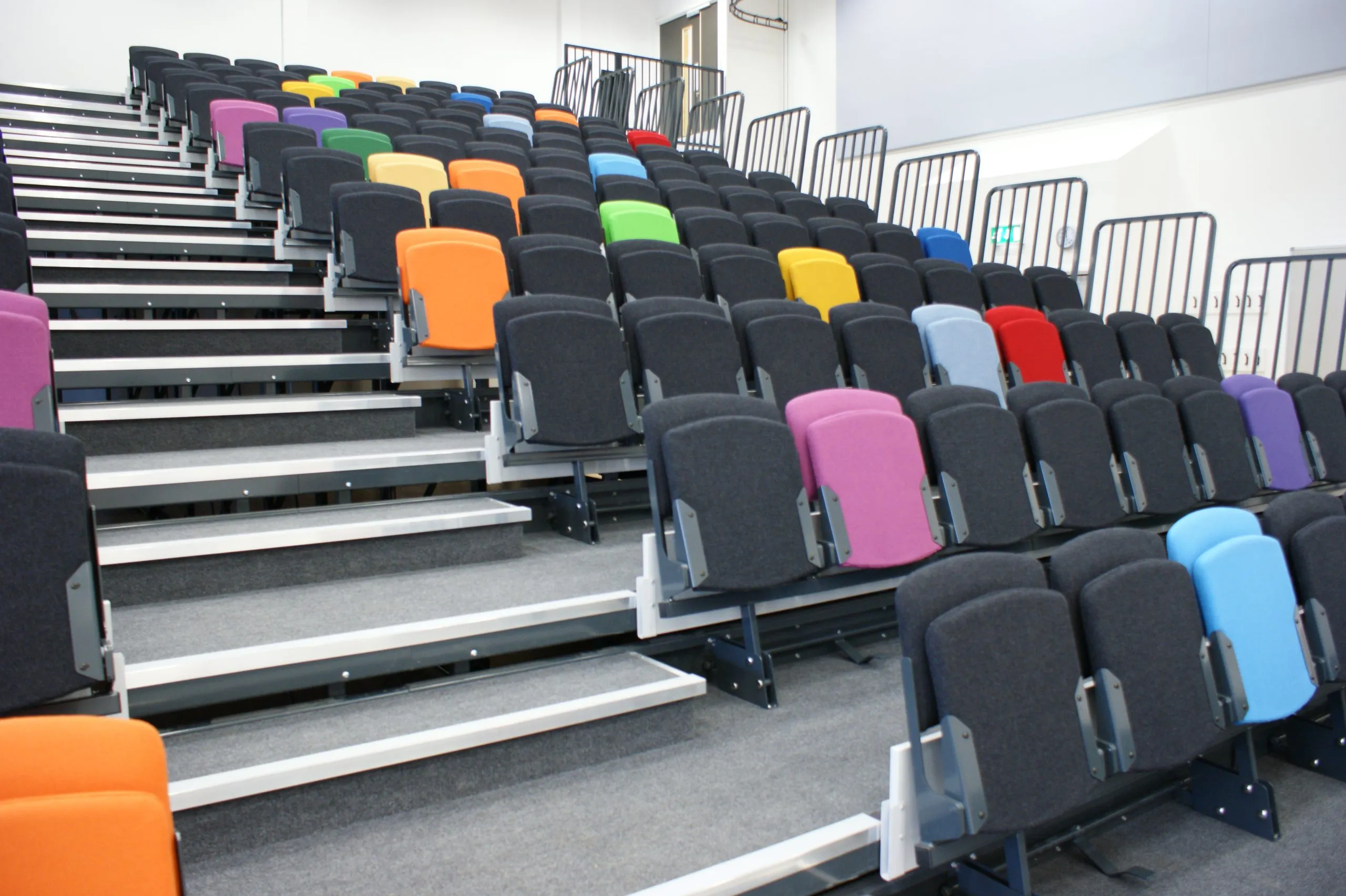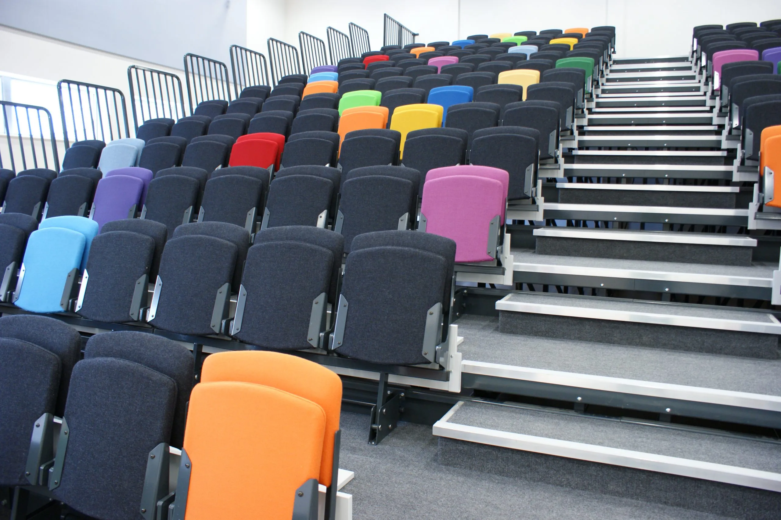We hebben stoelen die een populaire keuze zijn voor veeleisende omgevingen zoals scholen, studio theaters en arena’s. Ook hebben we stoelen die een luxere uitstraling hebben, meer comfort bieden en een langere levensduur hebben. VGM Tribunes Nederland biedt verscheidene stilistische en comfortabele auditorium stoelen. Voor Auditoria worden zowel inschuifbare tribunes als vaste tribunes gebruikt. Vraag ons naar de mogelijkheden.