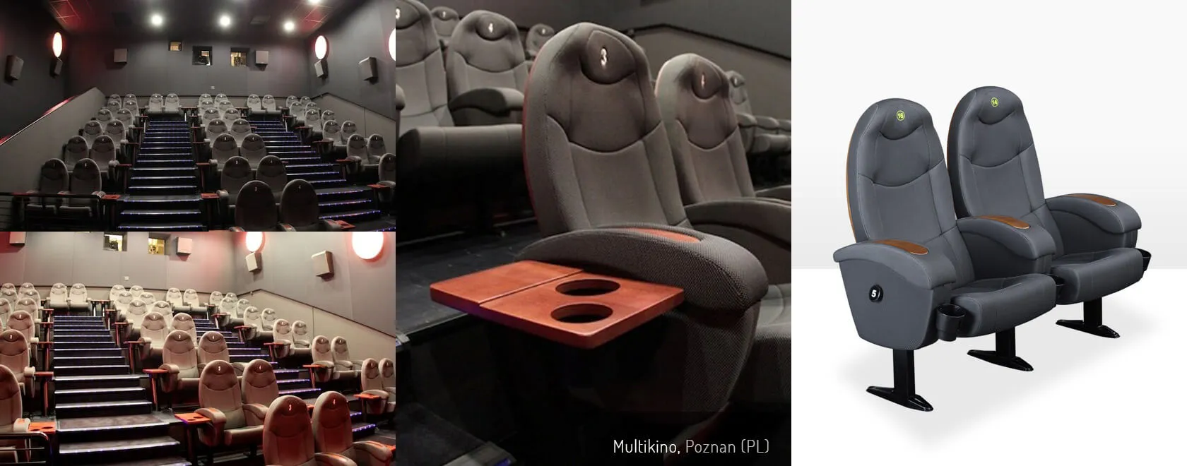 We leveren stoelen die speciaal ontworpen zijn voor cinemazalen. Deze stoelen komen in verschillende diktes, hebben een ergonomische zitting, zijn qua stof berekend voor veelvuldig gebruik en de zitting en rugleuning bestaan uit zeer hoogwaardig kwaliteitsstaal.