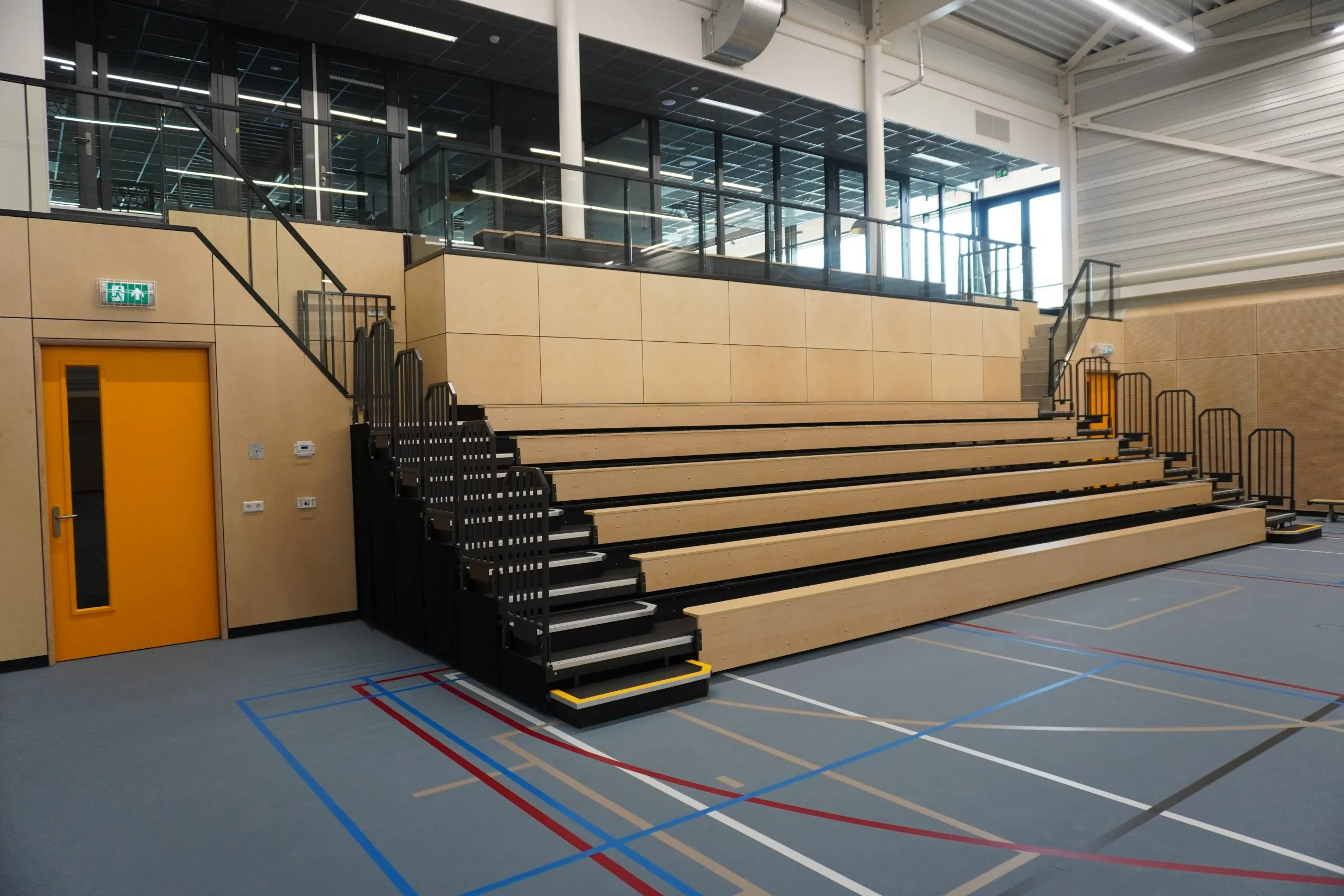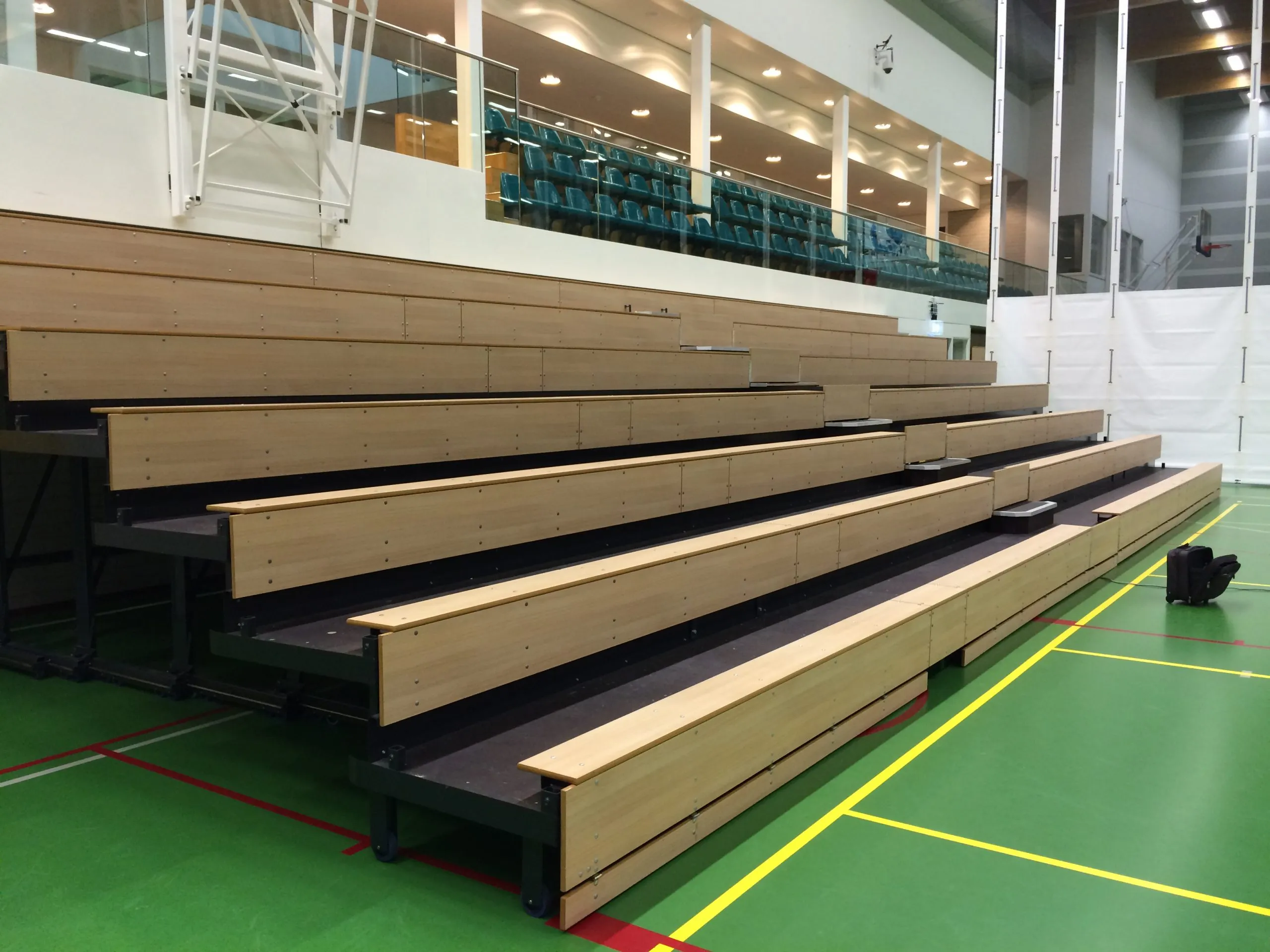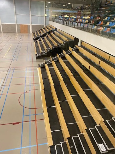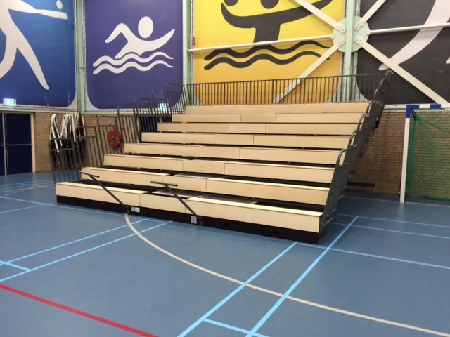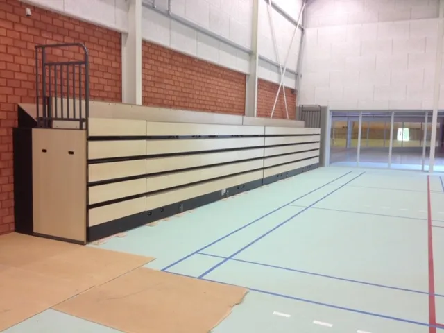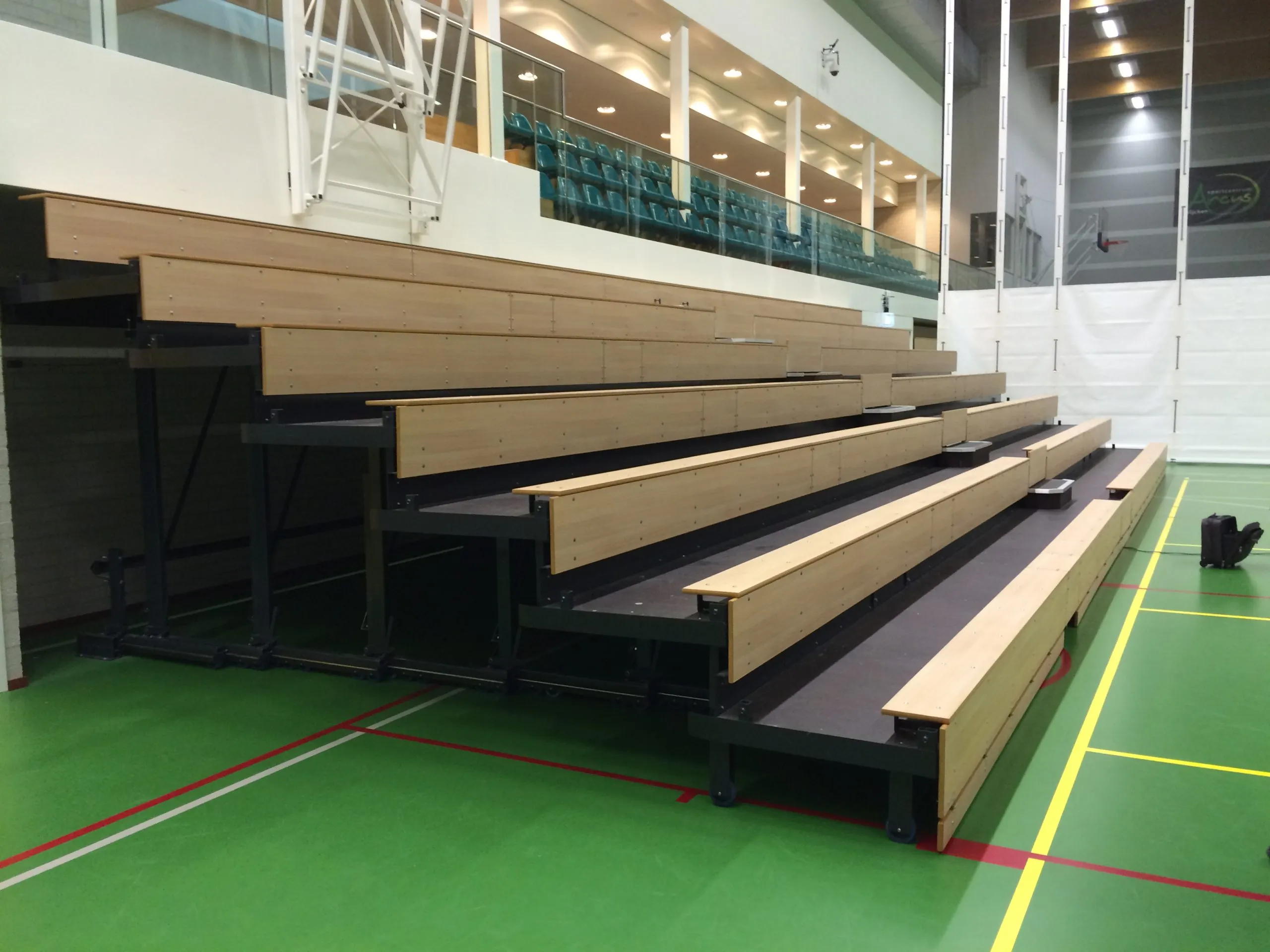 De combinatie van uitschuifbare tribunes met banken geeft een economische en flexibele oplossing. De tribunes zijn makkelijk en snel in- en uit te schuiven. Voor elke vloer hebben we een betaalbare oplossing. Onze banken zijn stevig bevestigd door bout en moer. Ook esthetisch gezien kan de bank alleen aan de onderkant worden bevestigd, indien gewenst.